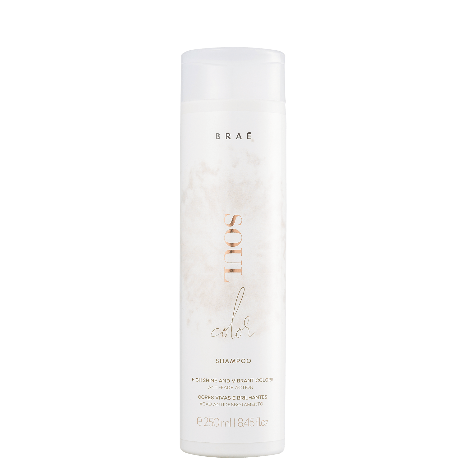 Shampoo para cabelos coloridos ou com mechas. BRAÉ Soul Color protege a coloração para um tom vibrante e brilhante por muito mais tempo. O Shampoo BRAÉ Soul Color promove limpeza dos fios de forma suave, com formula enriquecida com Blend de Aminoácidos, Pantenol e Proteína do Arrozação. Seu uso garante ação antioxidante e nutritiva, que protege e renova os fios para evitar o desbotamento da cor e os danos a fibra capilar. Livre de sal e parabenos.