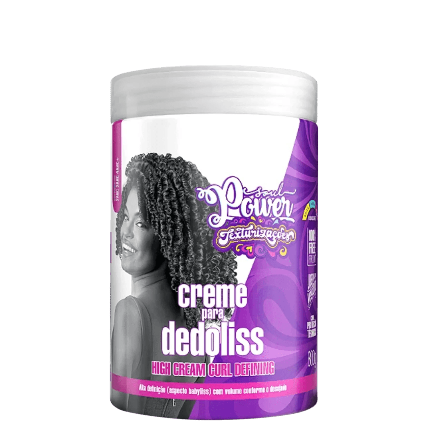 Soul Power Creme Para Dedoliss Texturizações High Cream Curl Defining - 800g.Curvaturas 3ABC 4ABC+-Alta definição (aspecto babyliss), com volume conforme o desejado.-Com proteção térmica-Liberado e Vegano-Definição uniforme e volume estruturado.Dica:Com os cabelos úmidos, separe em seções, começando pela parte de trás. Aplique o CREME PARA DEDOLISS e, em seguida, pegue uma pequena mecha e use movimentos circulares com o dedo indicador para fazer a mecha girar ao redor do dedo. Segure um pouco e solte com cuidado para não desfazer o cacho.Esse produto também pode ser utilizado nas técnicas LOC e COG, na etapa C (creme).ATIVOS:BLEND DE CHIA E LINHAÇA: Ativam a formação e manutenção das ondas, cachos e crespos, formando um filme hidratante e protetor.COLÁGENO VEGETAL: Forma um filme flexível que melhora a definição dos cabelos com curvaturas e protege contra a desidratação.GLICERINA VEGETAL: Poderoso umectante, que atua formando uma barreira de proteção nos fios, impedindo a perda de água.MEL VEGETAL: Possui propriedades emolientes, remineralizantes, e nutritivas aos fios. Confere suavidade, e maior duração na definição das curvaturas dos cabelos.ÓLEO DE MACADÂMIA: Óleo natural emoliente e nutritivo, rico em Ômega 9 e Ômega 7. Promove brilho, emoliência e lubrificação dos fios.100% FREE FROM.