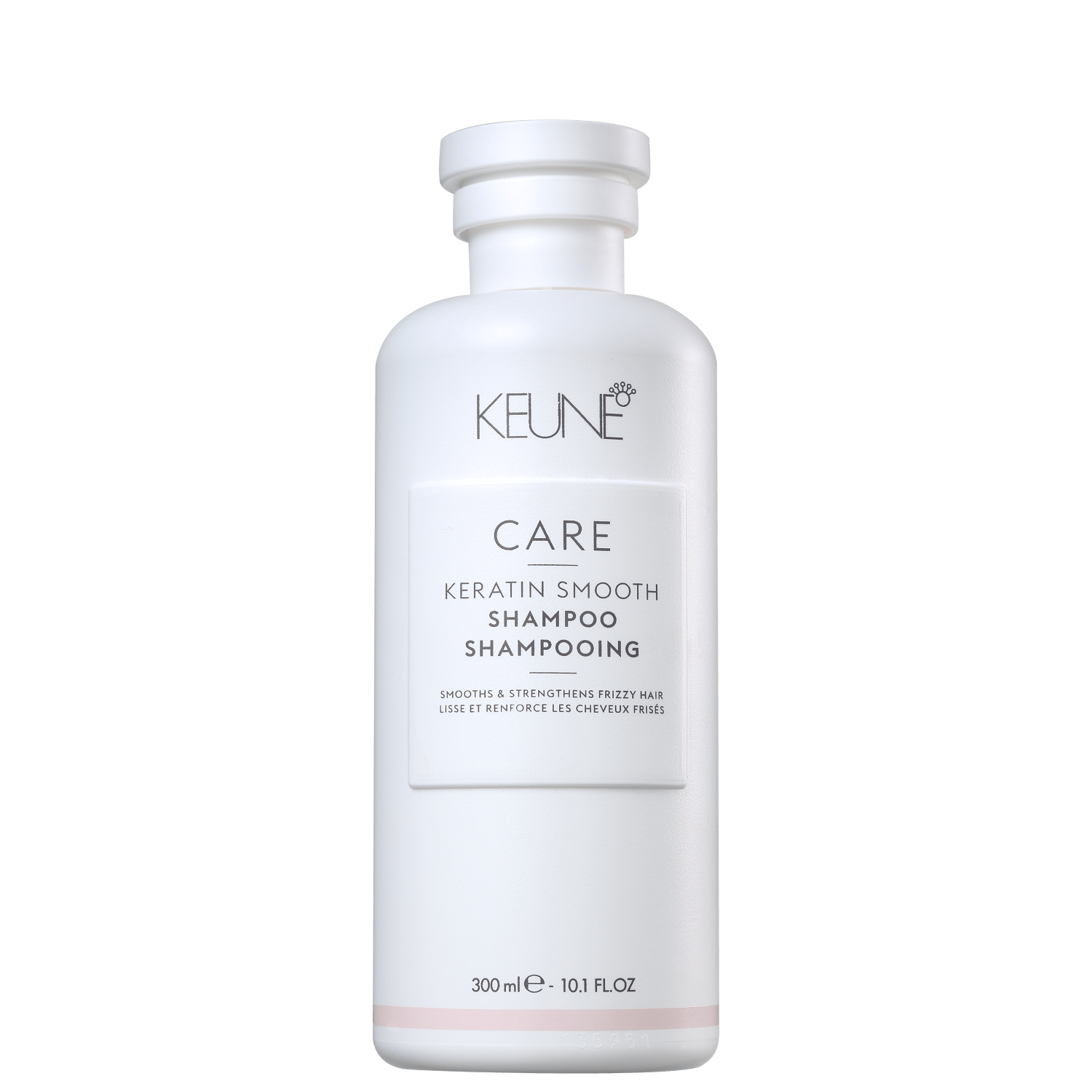 Shampoo para cabelos danificados. Keune Care Keratin Smooth dá força contra a quebra, protege das agressões com brilho e maciez. Keune Care Keratin Smooth faz a reposição da proteína perdida por conta das agressões, como uso constante de secador e chapinha, fatores ambientais e químicos, e aumenta a defesa dos fios de dentro para fora contra novos danos. Ao mesmo tempo em que fortalece, sua fórmula hidratante recupera a maleabilidade dos fios e realça o brilho.