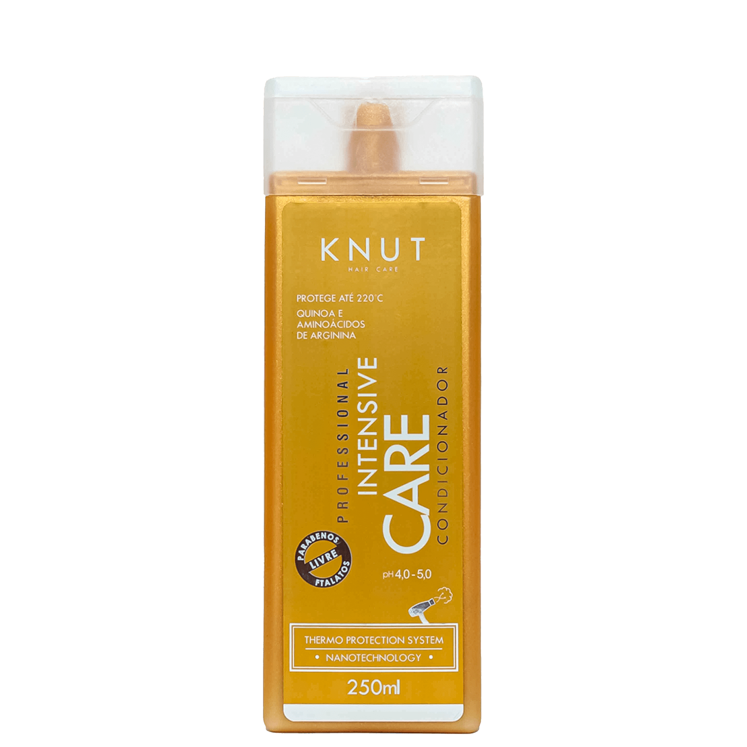 Condicionador para cabelos que foram danificados e ressecados pelo uso de secador, prancha ou babyliss. Knut Intensive Care Condicionador age de 3 formas: desembaraça e condiciona os fios, repara os danos causados pelas altas temperaturas e protege do calor excessivo.Knut Intensive Care Condicionador tem ingredientes eficazes para hidratar, nutrir, recuperar a saúde e proteger as fibras capilares. Com o uso da linha seu cabelo fica protegido até 220º C e você pode suar os acessórios térmicos despreocupada.Extrato de Quinoa: mantém os fios protegidos dos danos que as altas temperaturas causam. Ele também hidrata e nutre o cabelo.Arginina e Aminoácidos: reparam os danos causados pelo calor excessivo do secador, prancha ou babyliss e dão mais resistência ao cabelo.Produto livre de parabenos, ftalatos e ingredientes animais. Não testado em animais.