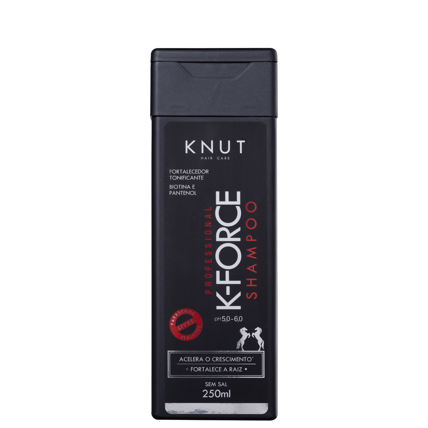 KNUT K-Force Shampoo vai muito além de limpar o cabelo. Tem uma fórmula rica em nutrientes e vitaminas. Eles dão força às fibras e ao bulbo capilar para aumentar a retenção de fios e ajudar no combate à queda de cabelo causada pela falta de vitaminas. Além disso, tonifica o couro cabeludo e estimula o crescimento.Produto livre de parabenos, ftalatos e ingredientes animais. Não testado em animais.
