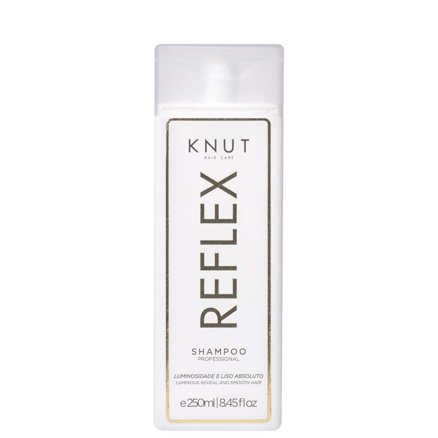 Shampoo para todos os tipos de cabelo. KNUT Reflex limpa e restaura a luminosidade e brilho sem pesar os fios. O Shampoo KNUT Reflex é enriquecido com um poderoso Blend de óleos nobres que garantem nutrição, sedosidade e um efeito liso por mais tempo. Seu uso também elimina os fios arrepiados, entregando um cabelo alinhado e livre do frizz.