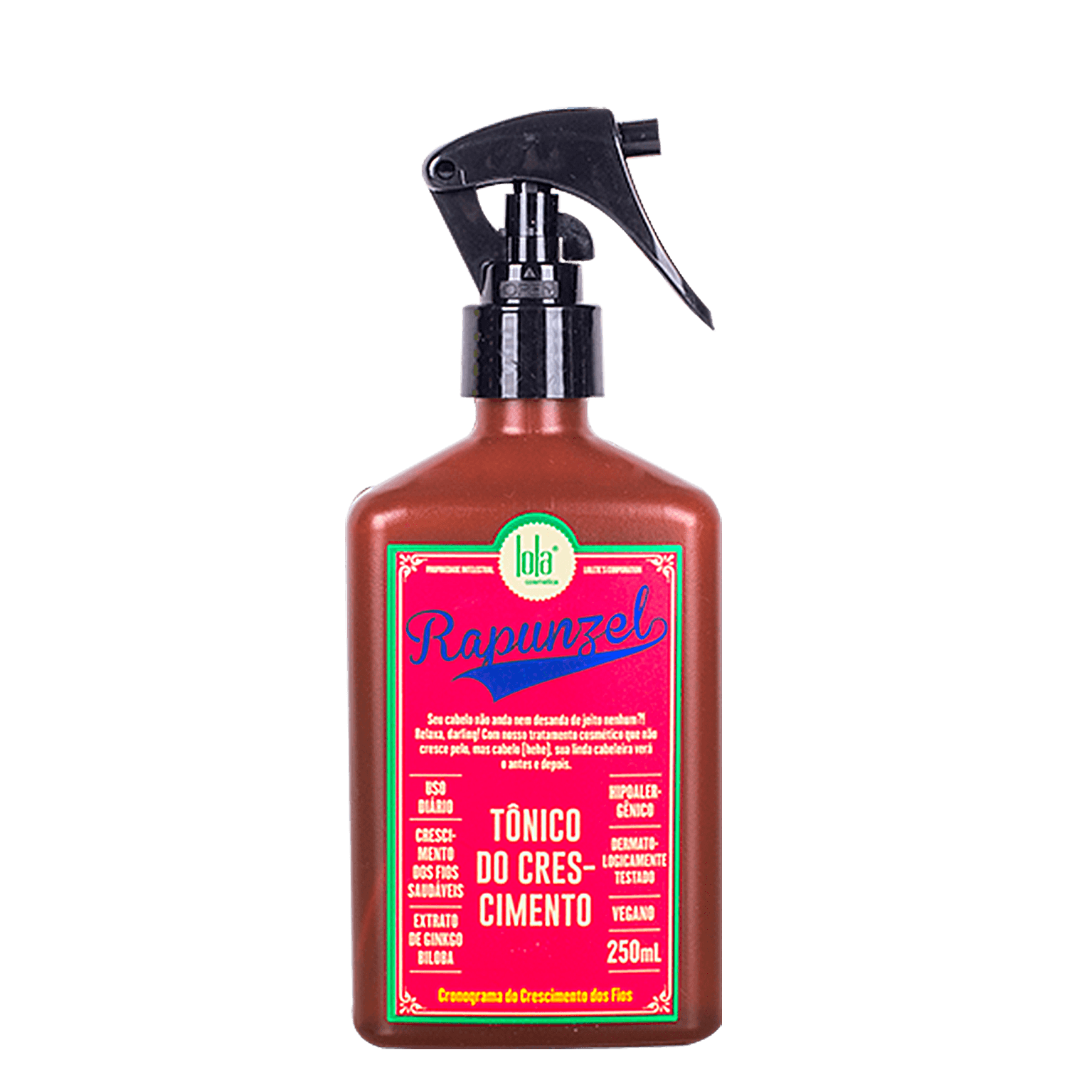 Tônico de tratamento contínuo para reduzir a queda de cabelo e estimular o crescimento. Lola Cosmetics Rapunzel Tônico do Crescimento dá força extra aos fios, deixando-os mais macios e resistentes.O Tônico do Crescimento Rapunzel, de Lola Cosmetics, age no fortalecimento do folículo para que a raiz fique forte e os fios tenham uma vida mais longa. Dessa forma o ciclo de crescimento do cabelo volta ao normal, evitando a queda constante e gradual.