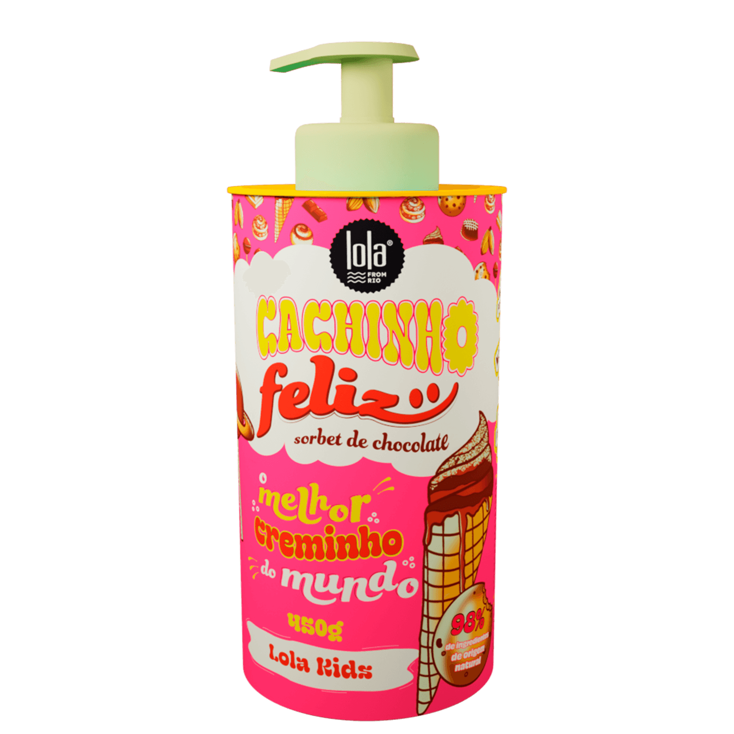 Creme de pentear para cabelos infantis. Lola From Rio Cachinho Feliz Sorbet de Chocolate desembaraça, hidrata e deixa os cachinhos saltitantes.O Creme de Pentear Lola From Rio Cachinho Feliz Sorbet de Chocolate foi especialmente formulado para cabelos cacheadinhos, que necessitam de uma nutrição mais poderosa.Com Manteiga de Ucuúba, Óleo de Castanha do Pará e Extrato de Cacau, o produto é excelente para nutrir, fortalecer e modelar as madeixas. Trata-se de um item único, ideal para cachos com curvatura de 3B e 4C. Uso diário.