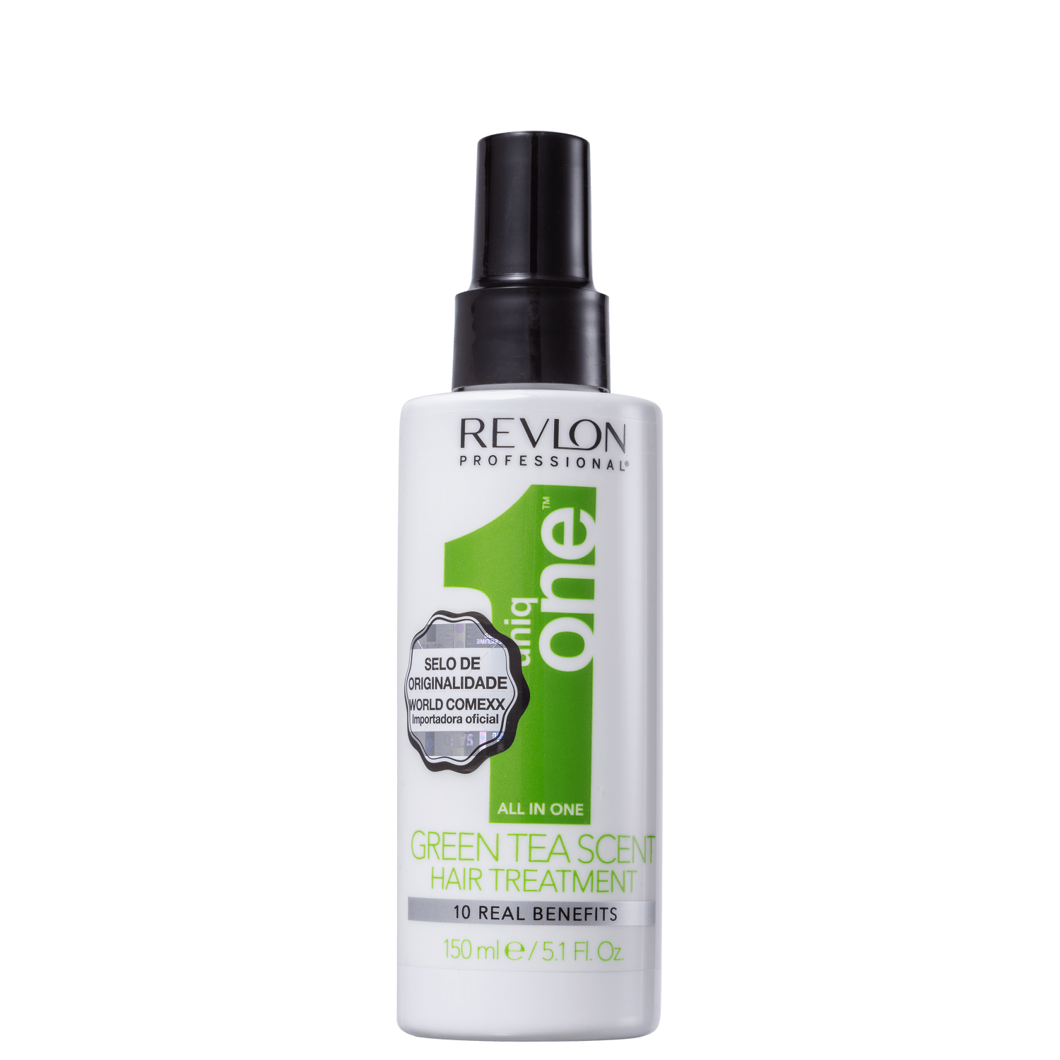 Leave-in para todos os tipos de cabelo. Revlon Uniq One All in One Green Tea reúne 10 benefícios de tratamento e finalização em um único produto. Leave-in Revlon Uniq One All in One Green Tea é um tratamento capilar que proporciona reparação extrema, resgata o brilho, adiciona corpo e auxilia no controle do frizz. Além disso, protege a cor graças ao seu fator de proteção UVA e UVB, facilita a escovação e previne as pontas duplas. A fragrância aromática e cítrica do chá verde ainda proporciona uma sensação incrível de frescor após o uso e diferencia o Uniq One Green Tea das outras versões do produto. Seus multibenefícios são: 1. Reparar belos secos e danificados.