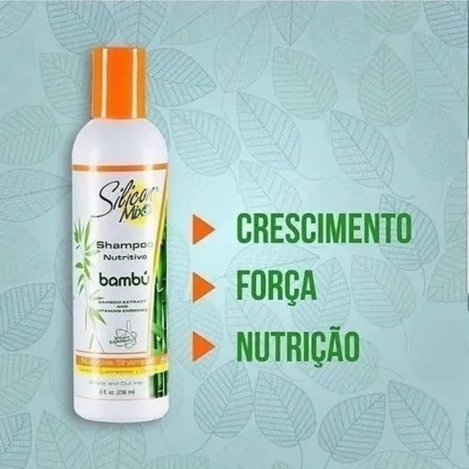 O Shampoo Silicon Mix Bambu contém em sua fórmula o extrato de bambu silicone, queratina e ceramida, que atua como restaurador dos fios deixando-os bem nutridos, auxiliando no crescimento dos fios.Sobre a Silicon Mix: A Silicon Mix é uma marca mundialmente conhecida por desenvolver produtos com alto poder de hidratação. Fabricada no Caribe (ilha da Republica Dominicana) pelo Laboratório Rivas que já possui 60 anos de tradição de mercado está presente em mais de 28 países, criando cosméticos com alto padrão de qualidade e eficiência para tratamentos capilares.