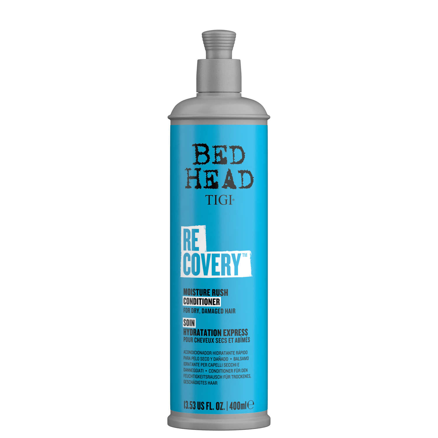 Condicionador para cabelos secos e pontas danificadas. TIGI Bed Head Recovery proporciona dose extra de hidratação, maciez e brilho. O Condicionador TIGI Bed Head Recovery contém moléculas que turbinam a hidratação, promovendo melhora da saúde do cabelo para uma recuperação intensa. Além disso, previne pontas duplas, controla o frizz, suaviza, restabelece e mantém a integridade do fio.