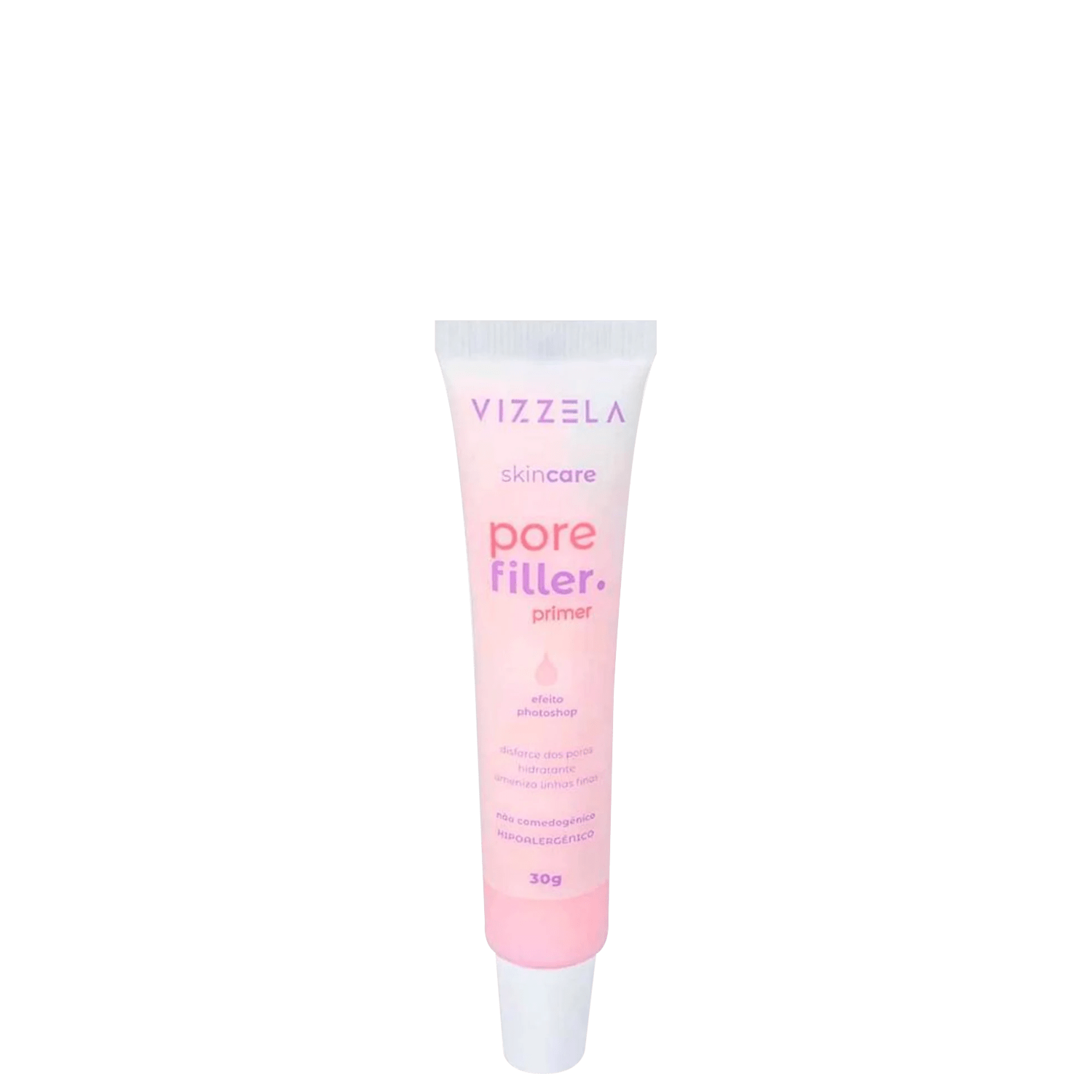 Primer facial. Vizzela Pore Filler ajuda a preencher poros e linhas, além de tratar a pele.O Primer Facial Vizzela Pore Filler possui ativos na fórmula que hidratam a cútis e causam aquele efeito tensor, o que permite um acabamento mais bonito da make. Também conta com propriedades refrescantes e leves que promovem o um efeito photoshop.